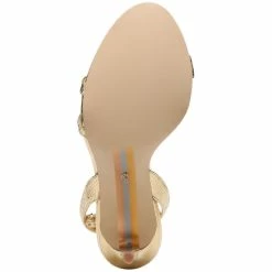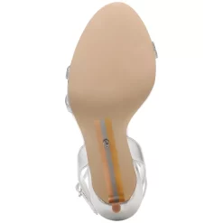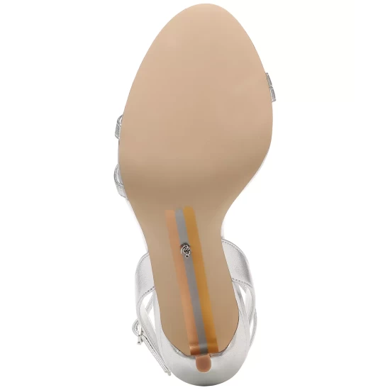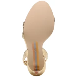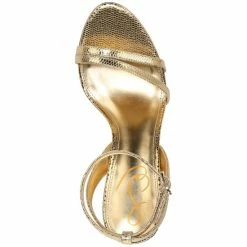 - Round-toe ankle-strap dress sandals with adjustable buckle closure