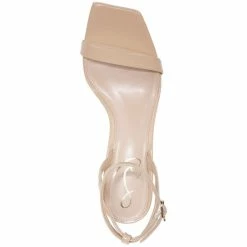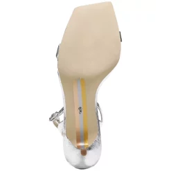- Square-toe ankle-strap dress sandals with adjustable buckle closure
