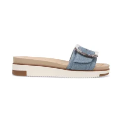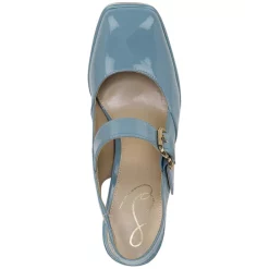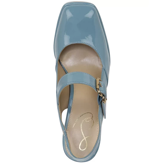 - Square-toe slip-on slingback pumps with adjustable buckle closure