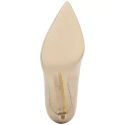 - Pointed-toe ankle-strap dress pumps with adjustable buckle closure