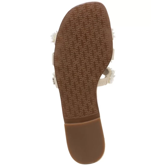 Trimmed with lustrous imitation pearls and intricate beading, Sam Edelman’s Bay Perla sandals take a flat-out glam approach to slide styling.