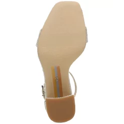 - Square-toe sandals with adjustable buckle closure at ankle-strap