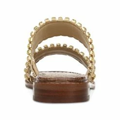 Woven with striking patterns and shine, the Hopie sandals from Sam Edelman trim a simple slide silhouette with sparkling rhinestones.