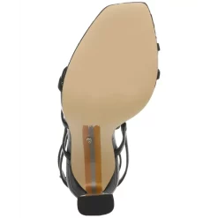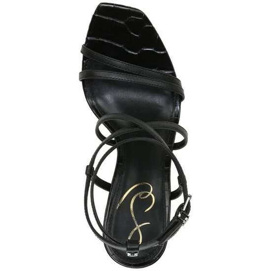 - Round-toe strappy dress sandals with adjustable buckle closure