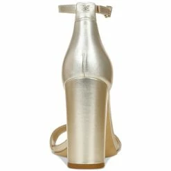 - Round-toe ankle-strap dress sandals with adjustable buckle closure